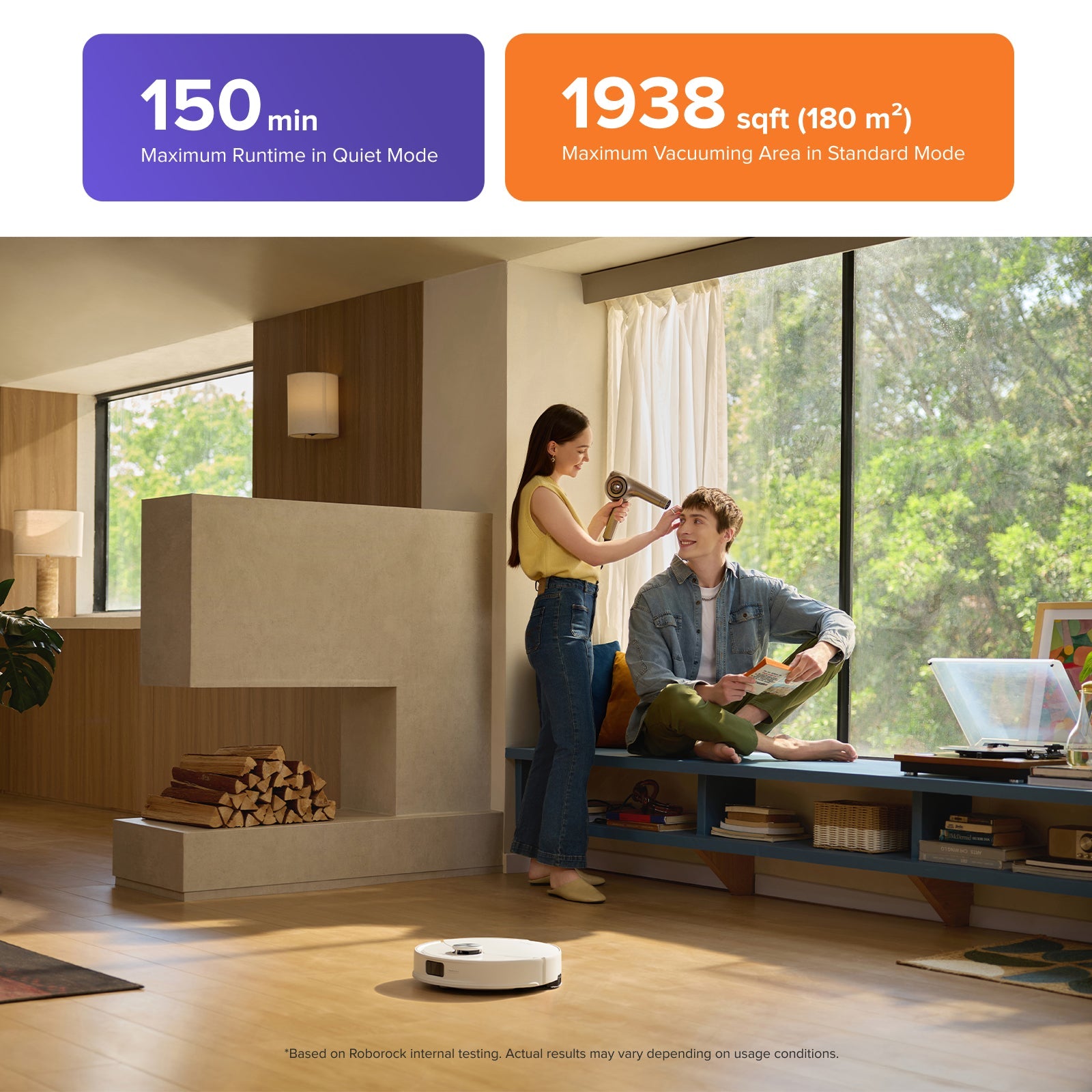 Driven by a powerful 5200mAh battery, Roborock Q10 S5+ can clean non-stop for up to 150 minutes*, ensuring prolonged cleaning sessions without interruptions.
