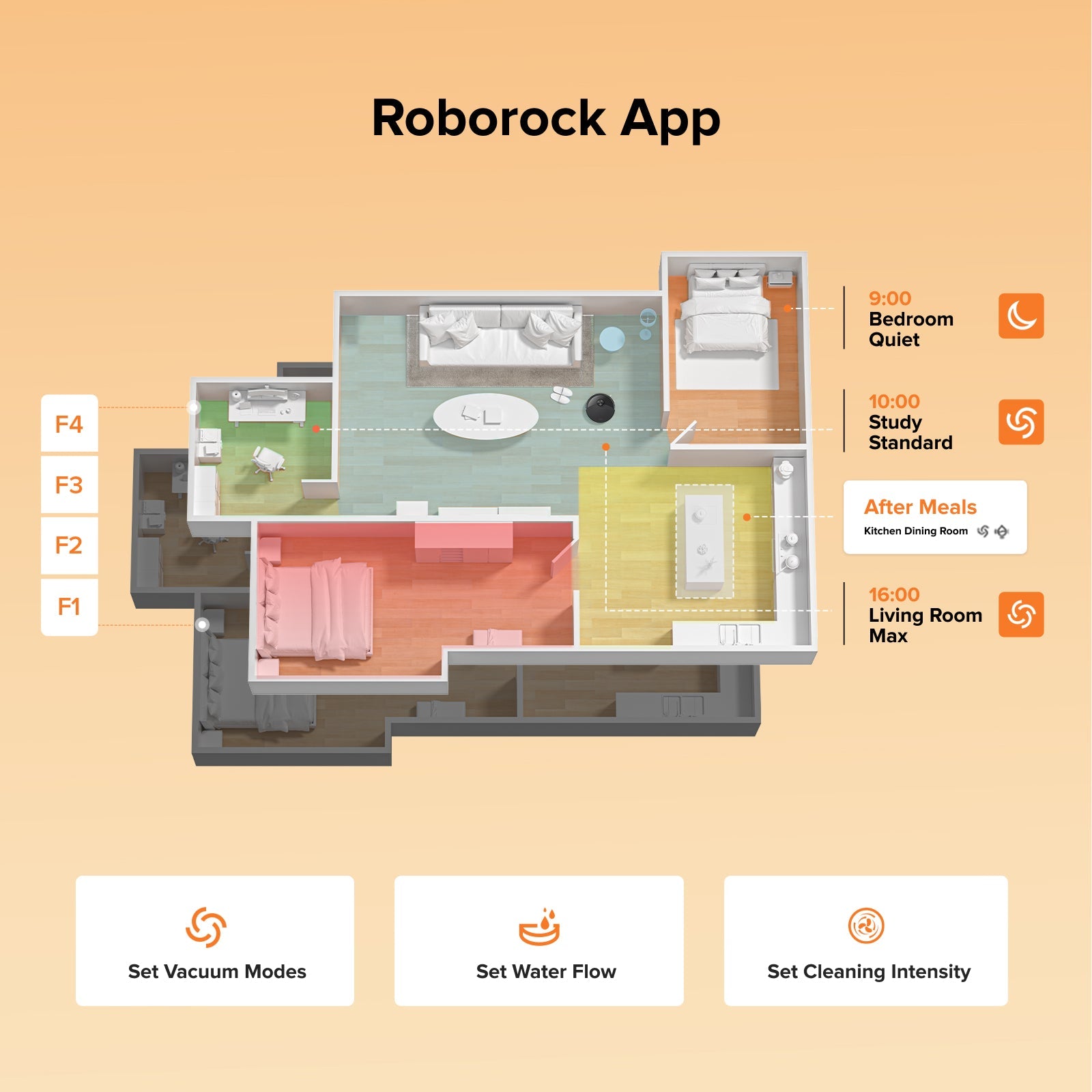 Set a time, cleaning mode, and the rooms that need to be cleaned, and the process will start automatically.