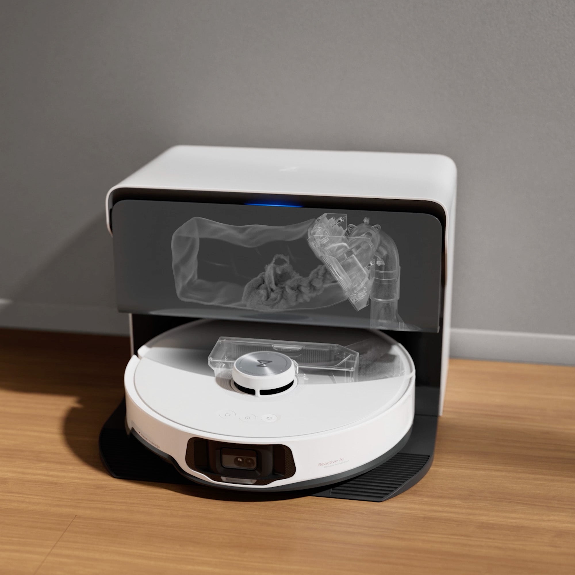 Combining advanced 3D structured light and an RGB camera, the S8 MaxV Ultra effortlessly identifies floor and room types, while skillfully navigating around obstacles like shoes, pet waste, and even floor mirrors, for a truly carefree cleaning experience.