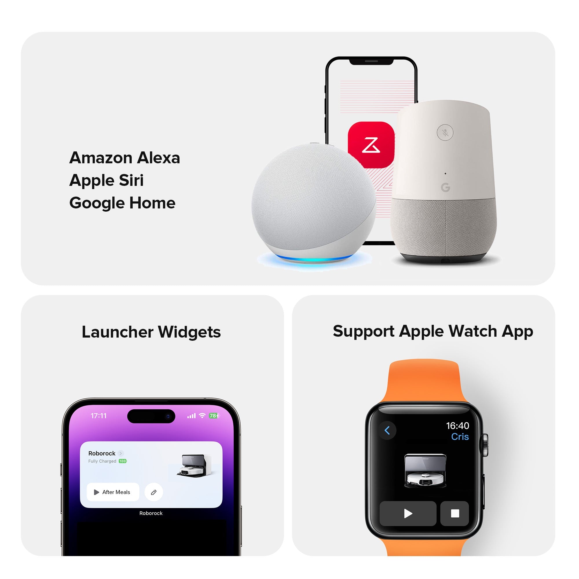 Voice commands via Amazon Alexa, Apple Siri, or Google Home.