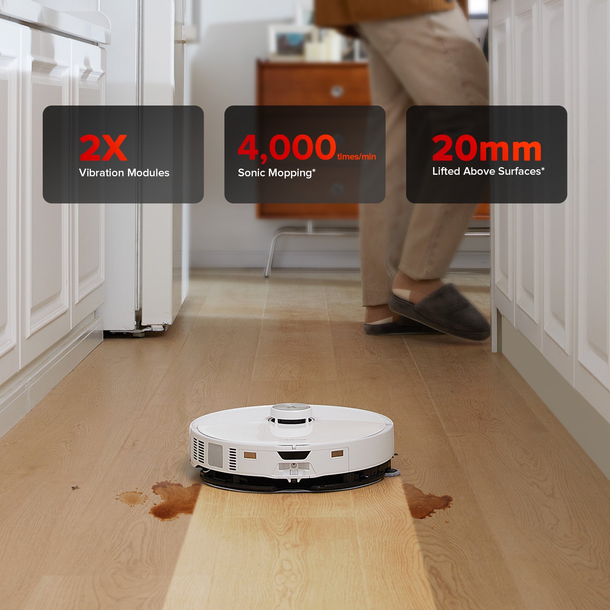 Featuring double vibration modules, the upgraded mop effortlessly manages dust, dirt, and dried-on stains through its 4000times/min high-speed scrubbing. It lifts up to 20mm* above the ground while cleaning carpets, allowing simultaneous vacuuming and mopping without causing unwanted dampness.