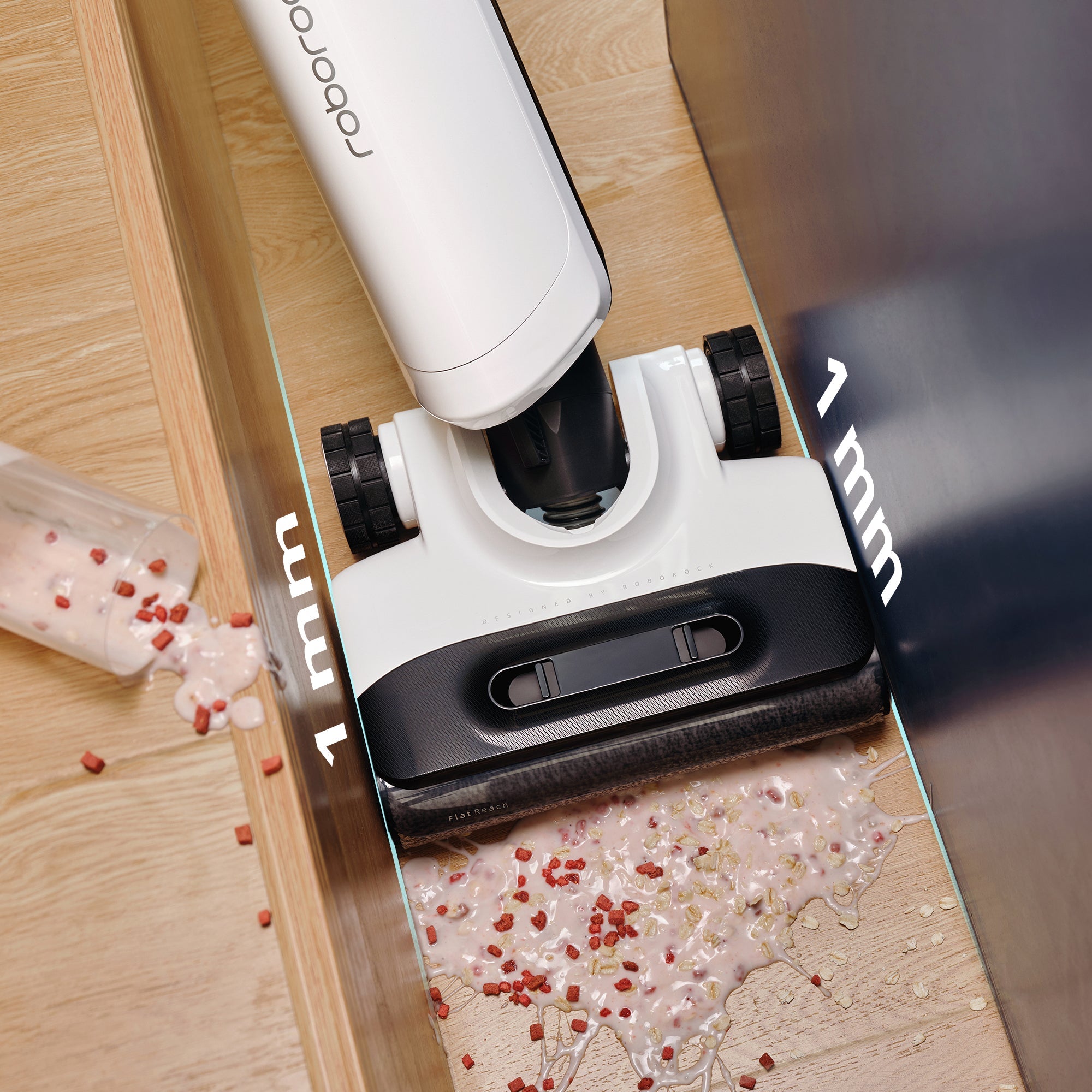 Roborock Flexi Pro easily reaches edges and corners with side margins of less than 1mm*.