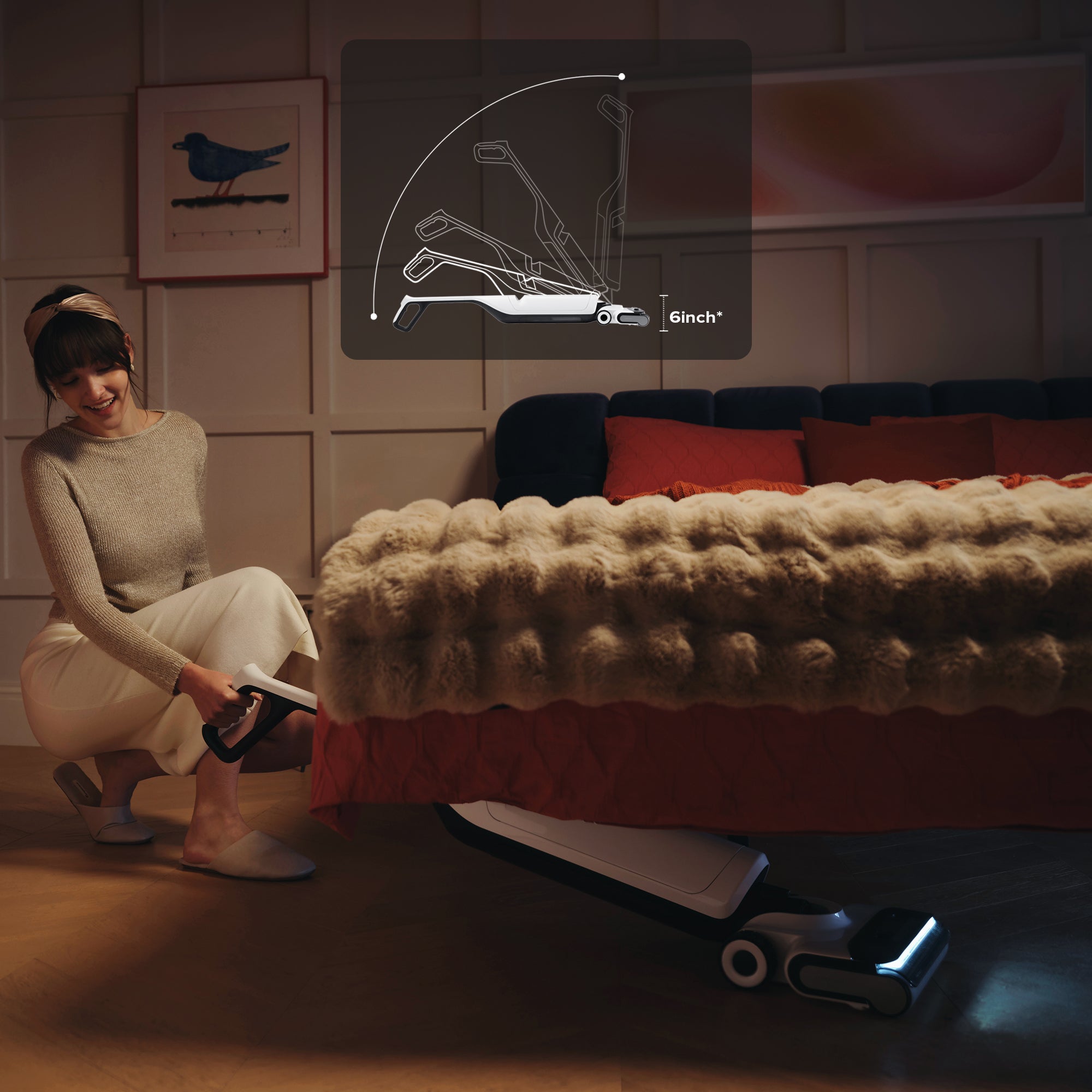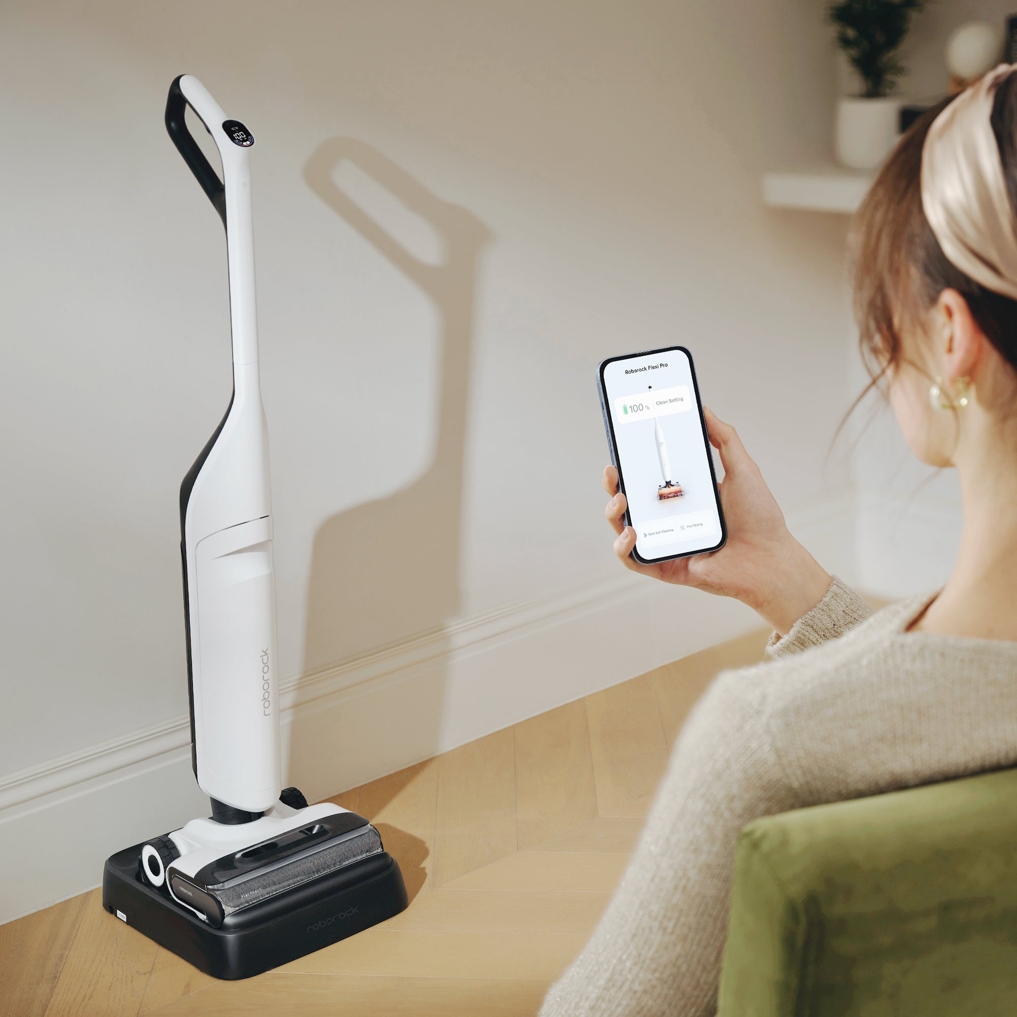 Roborock Flexi Pro features FlatReach™ technology for thorough cleaning under low furniture. Equipped with a powerful headlight, it leaves no place for dirt to hide, ensuring a spotless clean.
