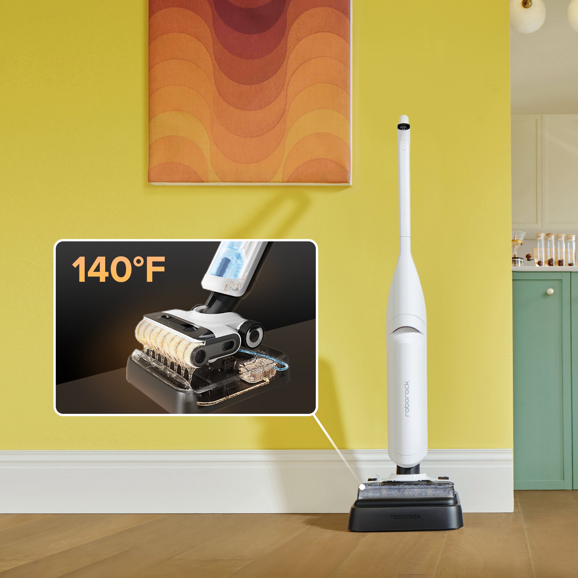 Incorporating Roborock RevoBrush™ 2.0 technology, a signature self-cleaning system for wet-dry vacuums, Roborock Flexi Pro self-cleans with a roller scrape and water spray module, ensuring a sparkling clean result while cleaning your floor. Its unique design involves the roller being scraped and rolling in two directions with 140°F hot water.