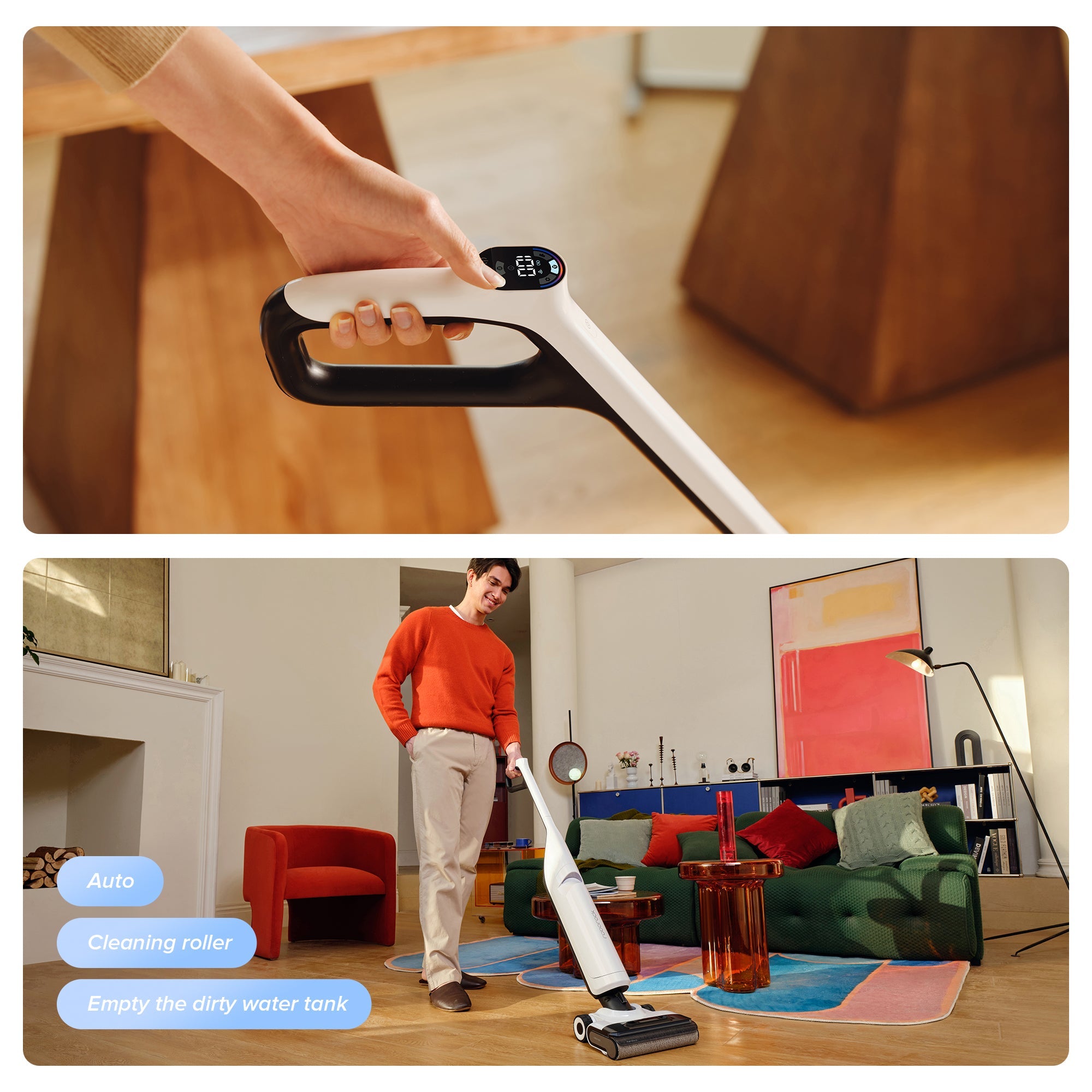 With an LED screen accessible at your fingertips, monitoring modes and status becomes effortless. Roborock Flexi Pro also provides real-time updates and operational reminders through convenient voice alerts.