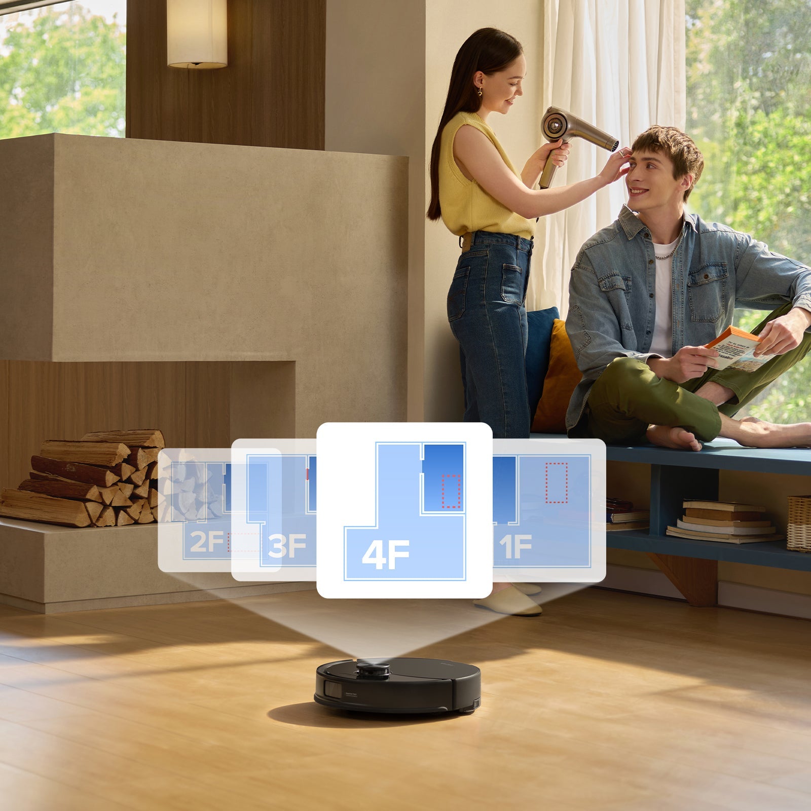 The 360° LiDAR-based navigation system scans your home in realtime to create detailed maps and chart the most efficient cleaning routes. It also saves multiple maps, making it perfect for multi-floor homes.