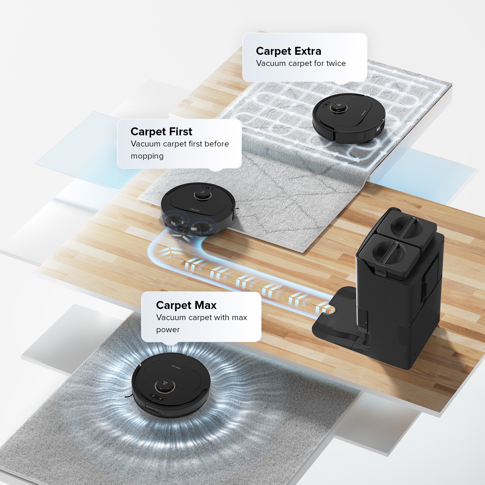 *The carpet and floor cleaning settings need to be activated manually in the Roborock app.