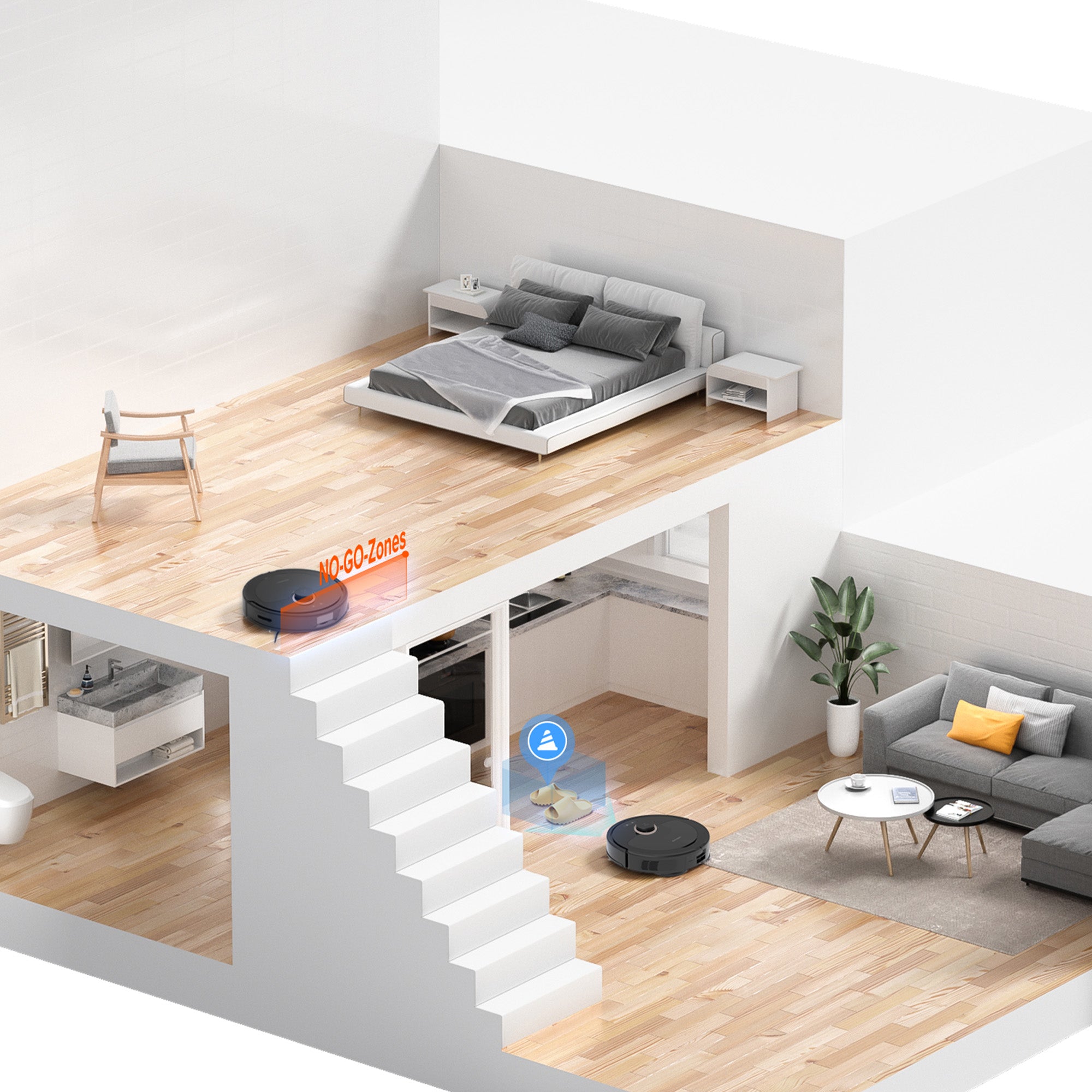 Auto detects easy-to-get-stuck places and stairs, preventing the robot from entering these spaces.