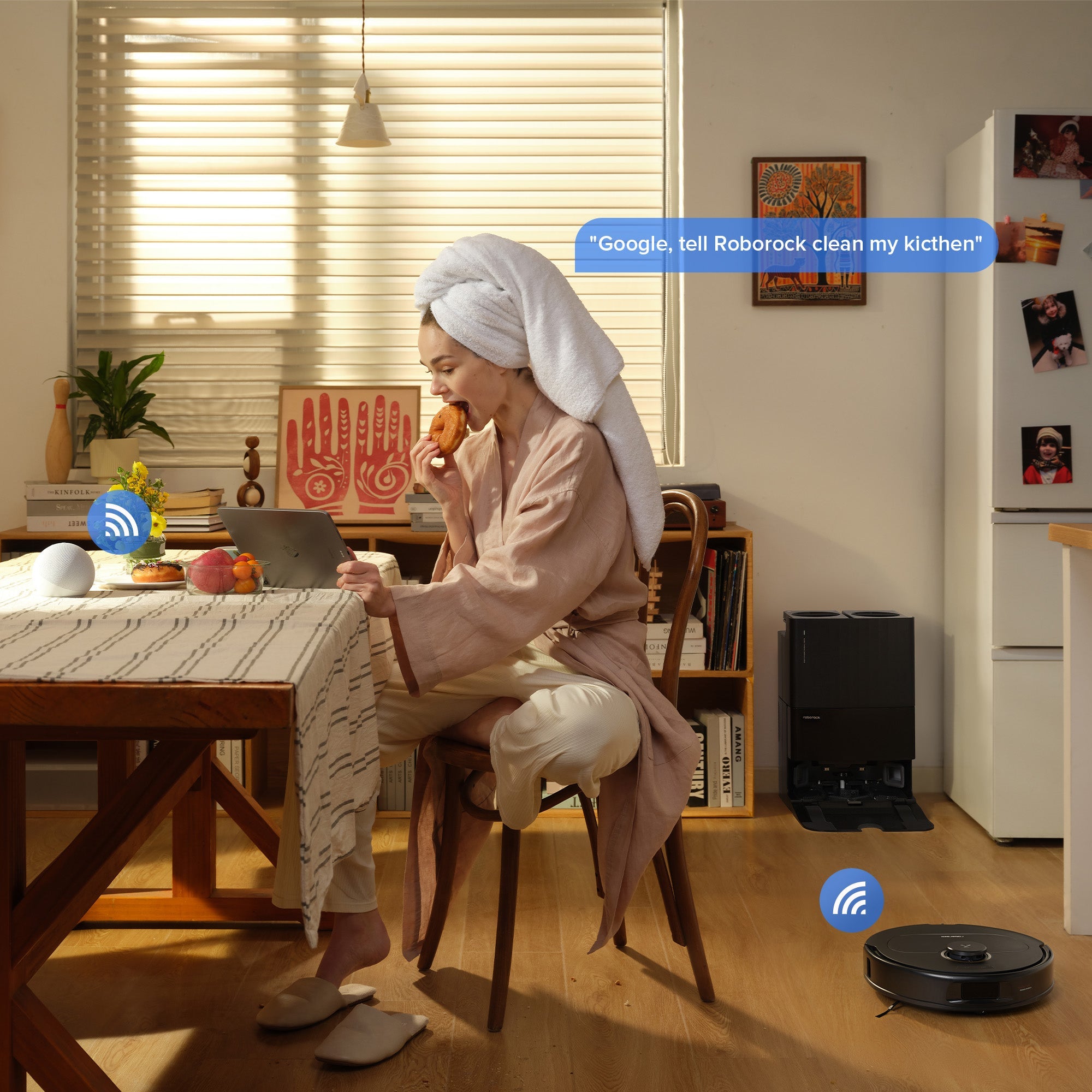 With Amazon Alexa, Google Home, or Apple Siri Shortcuts you can start cleaning your house or specific rooms simply by using your voice. It's super convenient and just a call away.
