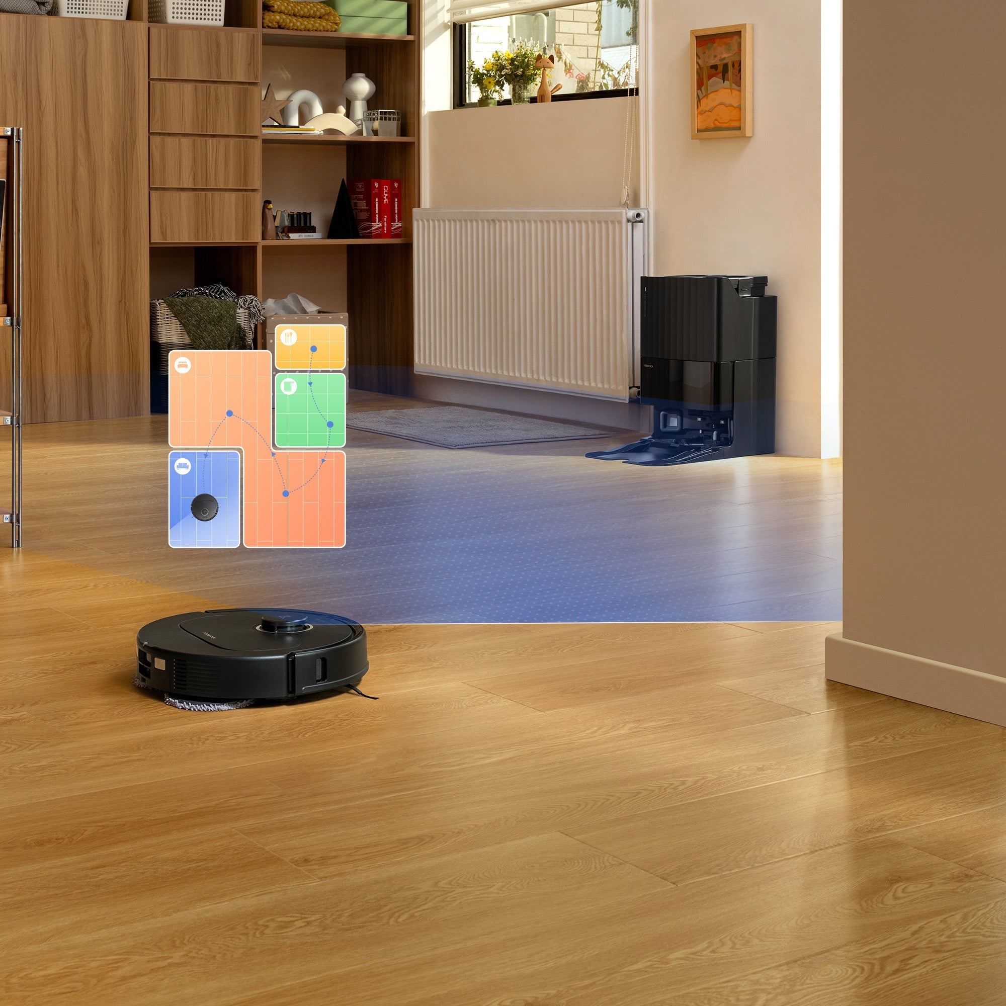 The robot vacuum quickly scans your home, in low or bright light, and creates a detailed map for an optimal cleanup route.
