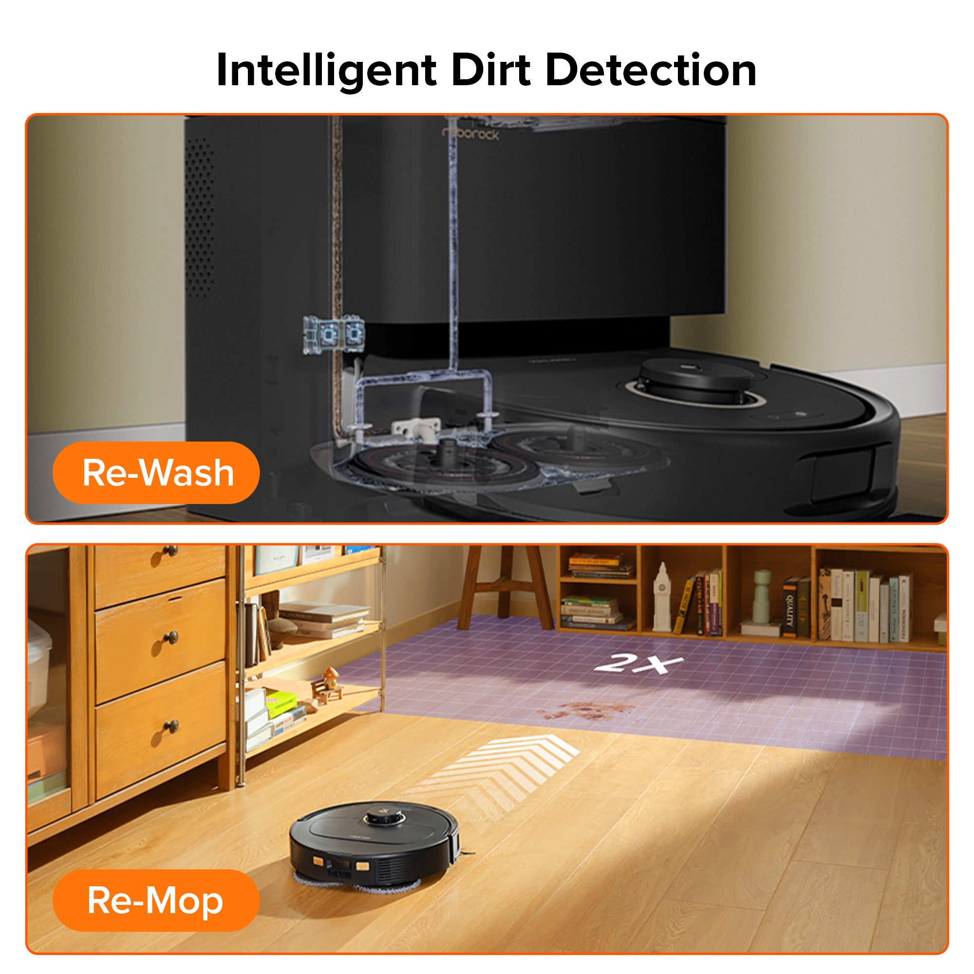 *Automatic re-mopping feature needs to be activated manually in the Roborock app.