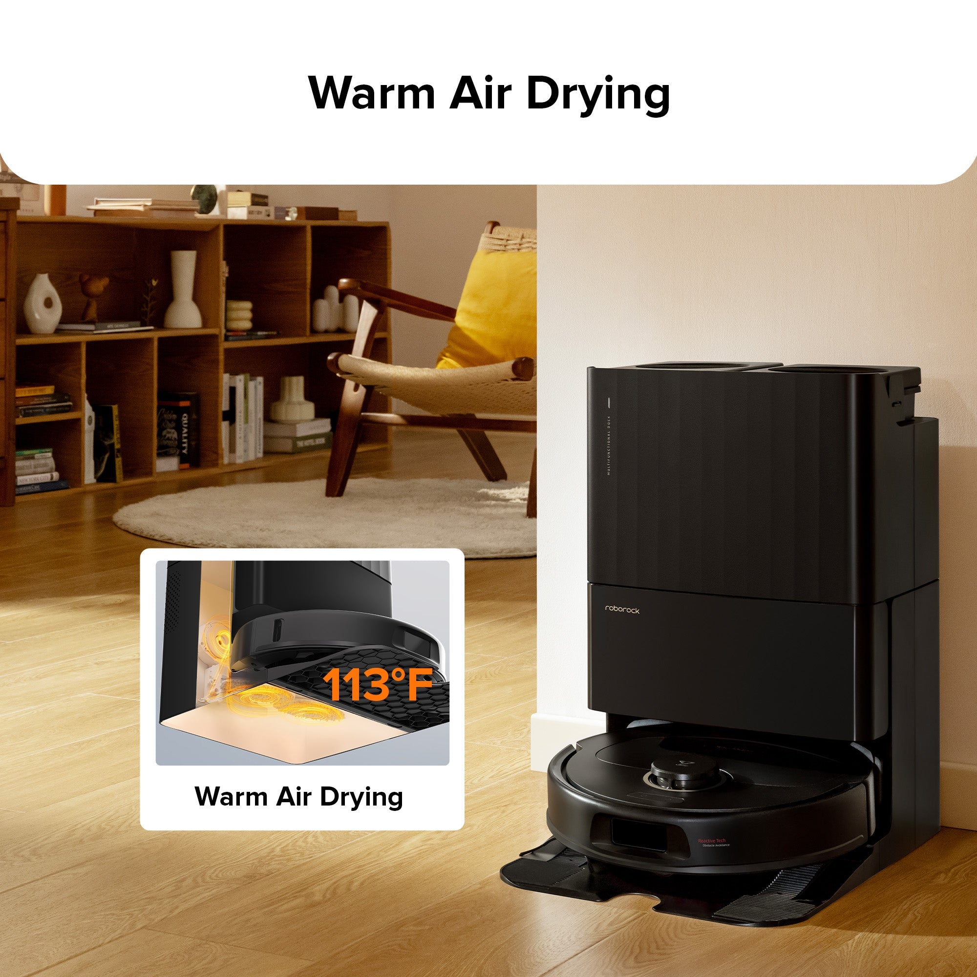 Dries the mops and dock base completely with 113℉ of warm air, preventing the growth of mold and unpleasant odors.