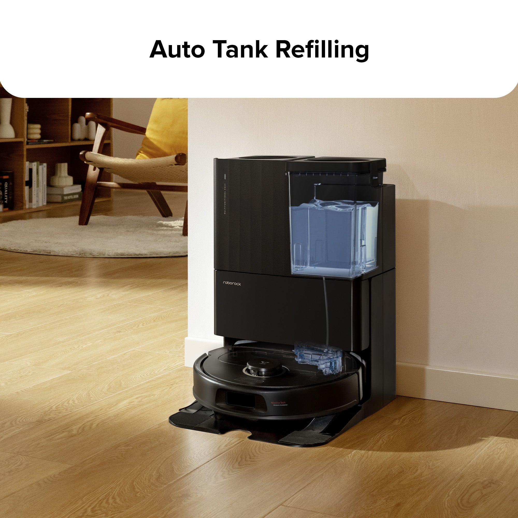Fills water tank automatically for a max mopping range and to ensure consistent mopping.