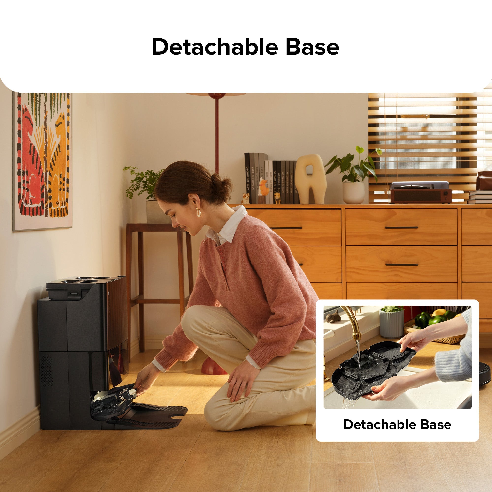 Easily remove the dock base for your cleaning convenience.The improved structural design with a larger filter requiresess manual cleaning