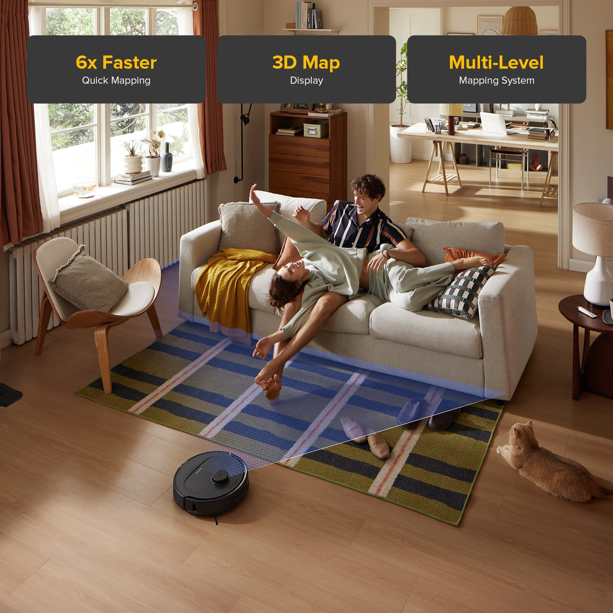 Powered by structured light, the Roborock Qrevo S is ready to detect and navigate around obstacles effortlessly, even in cluttered rooms with items scattered on the floor.