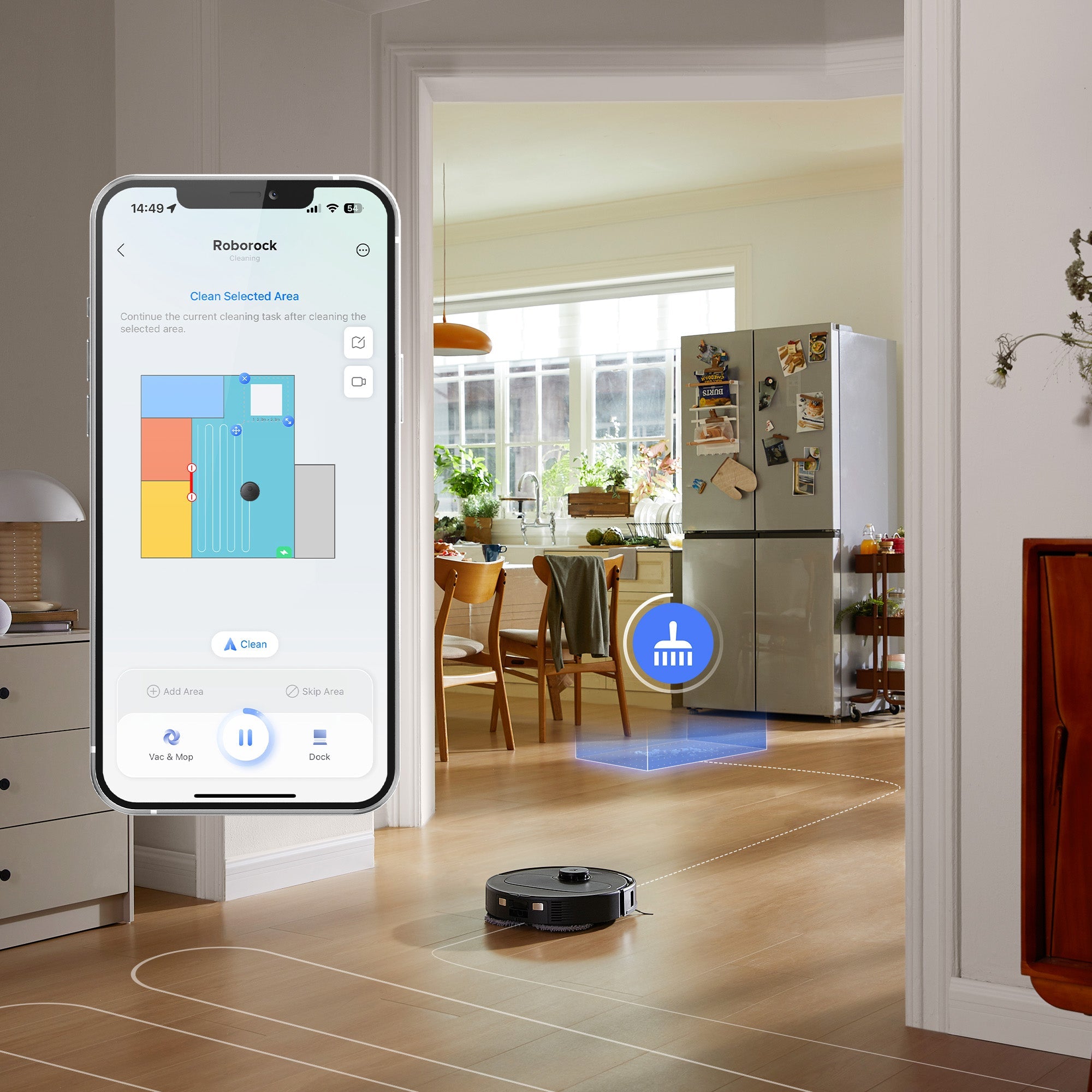 *Based on Roborock internal testing with a full clean water tank in the dock. Mopping mode is set to default. Actual results may vary depending on environmental conditions.